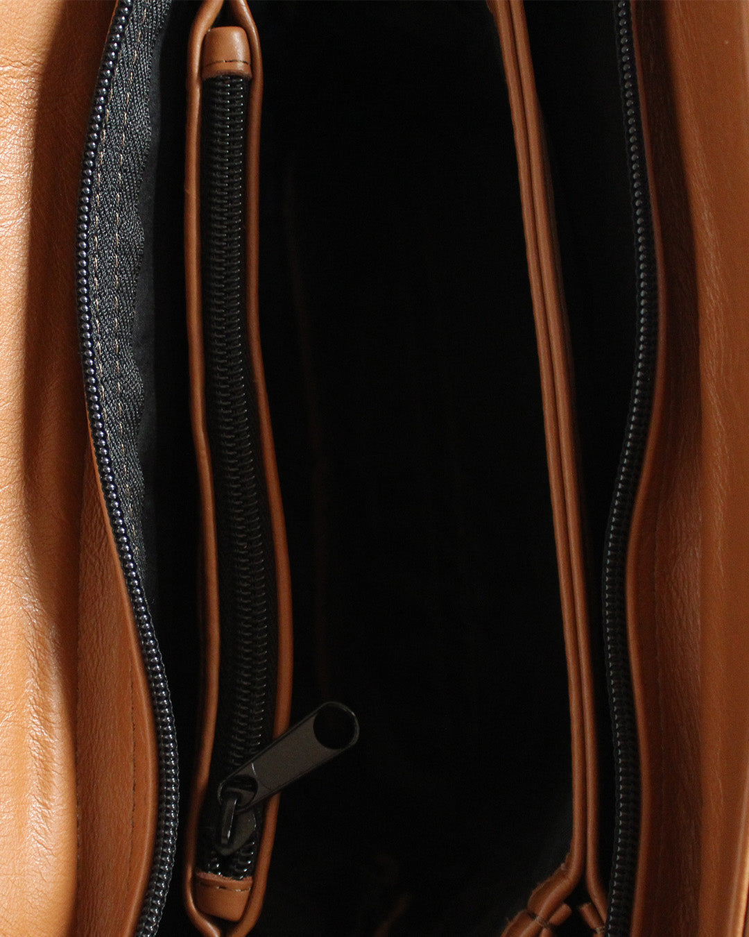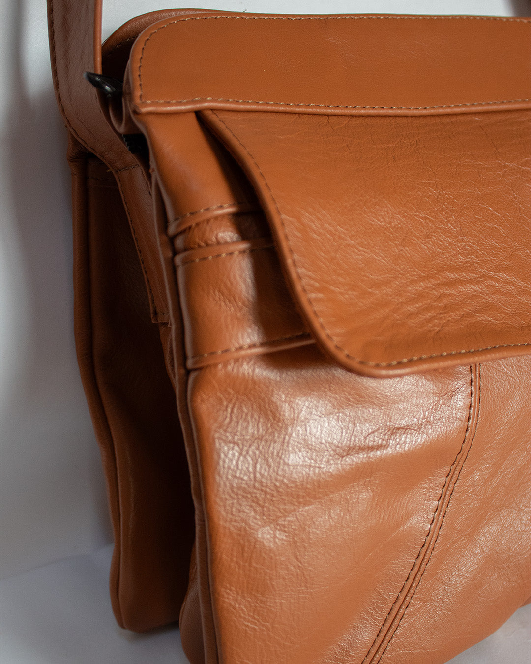 Bolsa para dama fabricada con piel genuina, esta bolsa se caracteriza por su diseño con extra espacio ya que contiene múltiples compartimentos en su interior, tiene una bolsa con cierre bajo la solapa frontal, en su bolsa principal tiene 3 apartados y una con cierre, por ultimo en la parte posterior tiene otra bolsa con cierre, ideal para cargar todo lo que necesitas en el día a día.