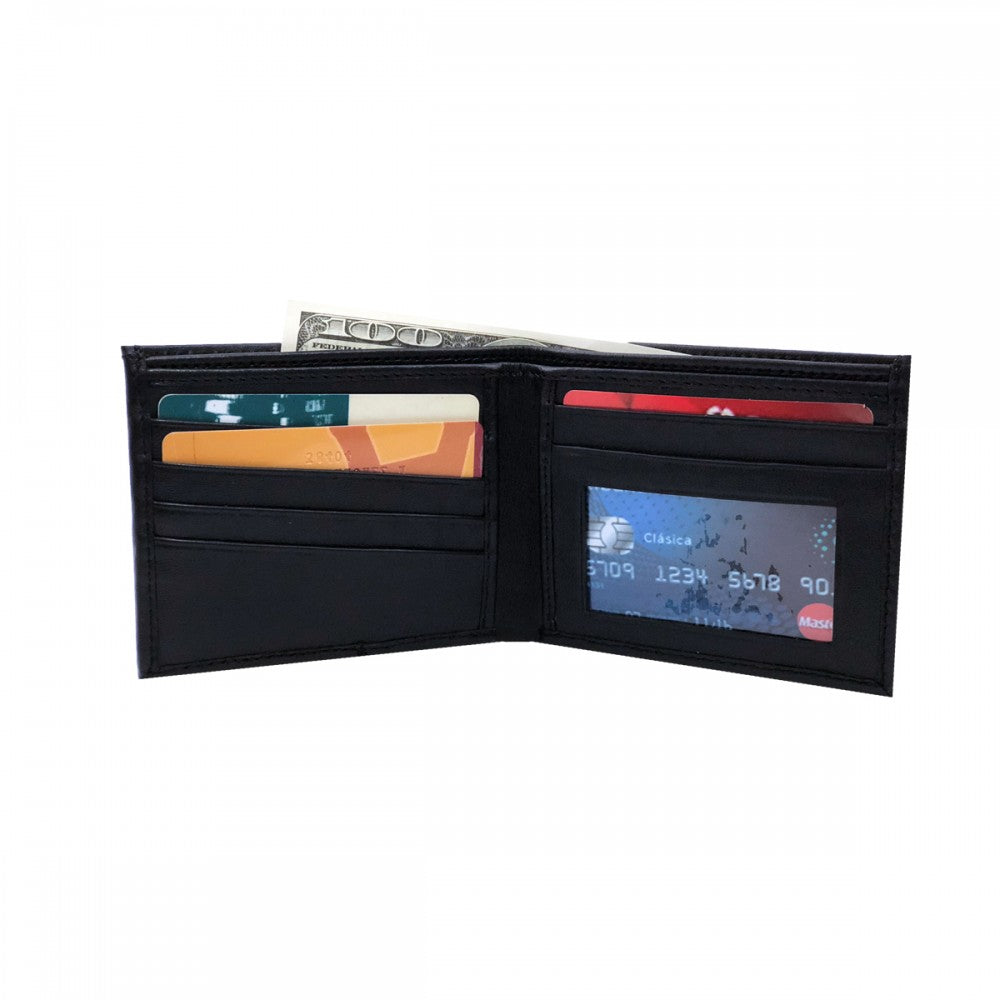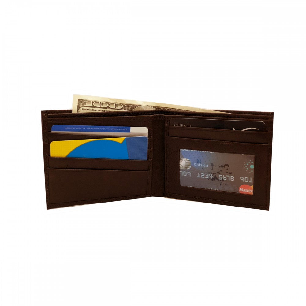 Este diseño de billetera plegable mantiene sus elementos esenciales en orden con dos compartimentos de billetes y seis ranuras para tarjetas. Esta cartera de piel tiene el gran toque de diseño en su tamaño compacto.
