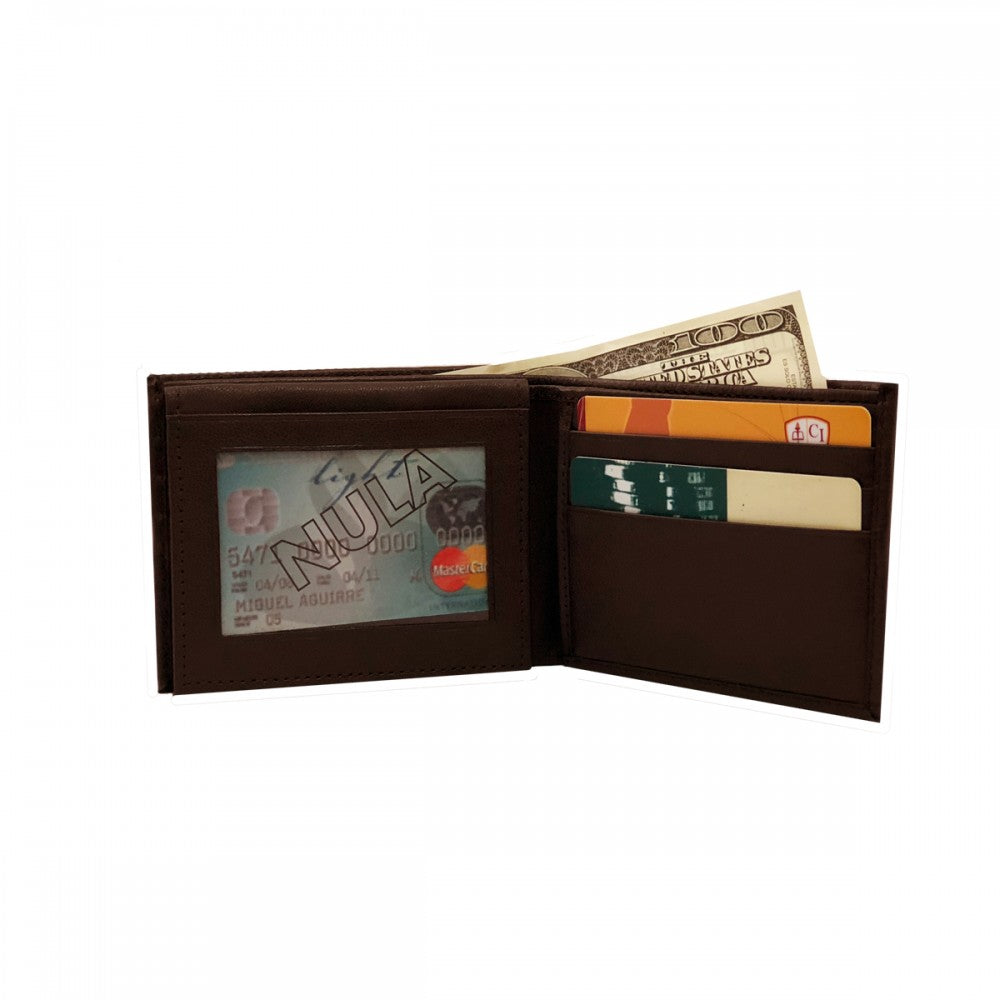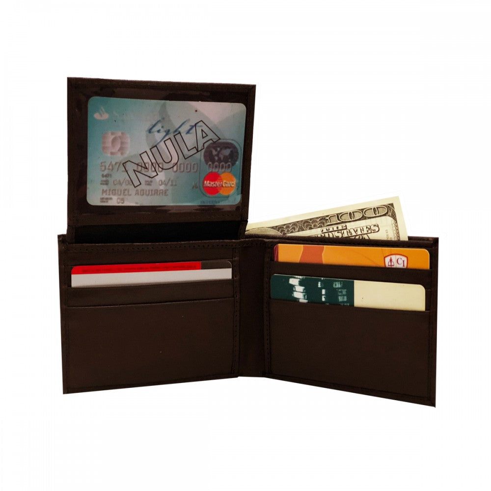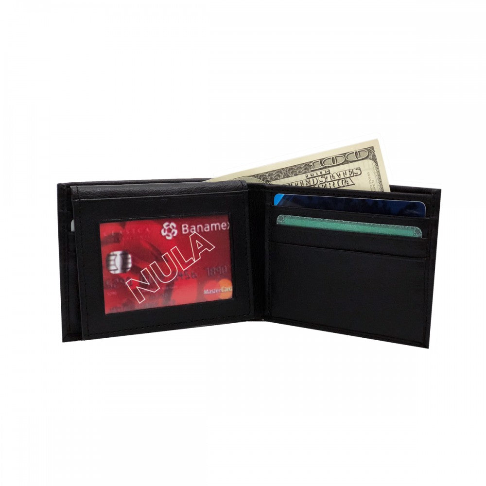 Billetera de cuero suave y liso, brinda soluciones inteligentes en cuanto a sus compartimentos además de un espacio completamente oculto en el que podrás colocar algún billete o documento que se quiera mantener a discreción. Disponible en negro, café y café NBK.