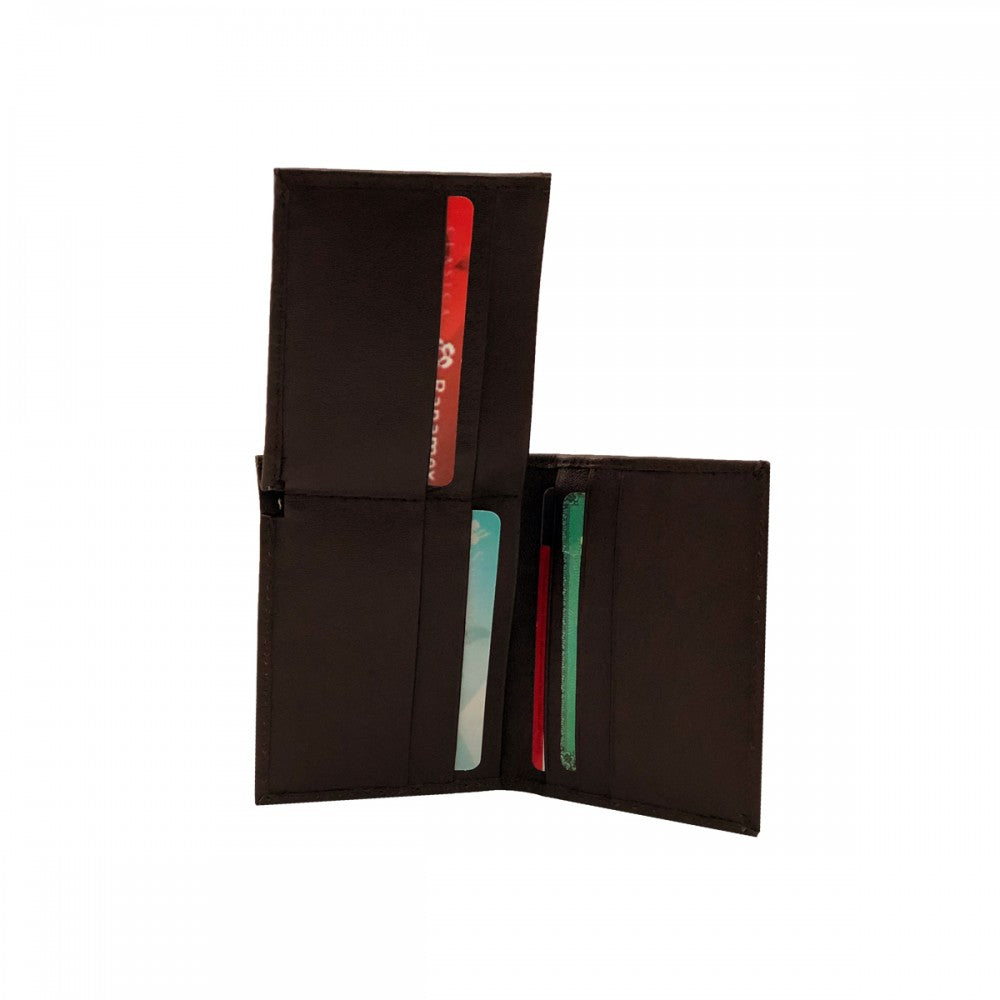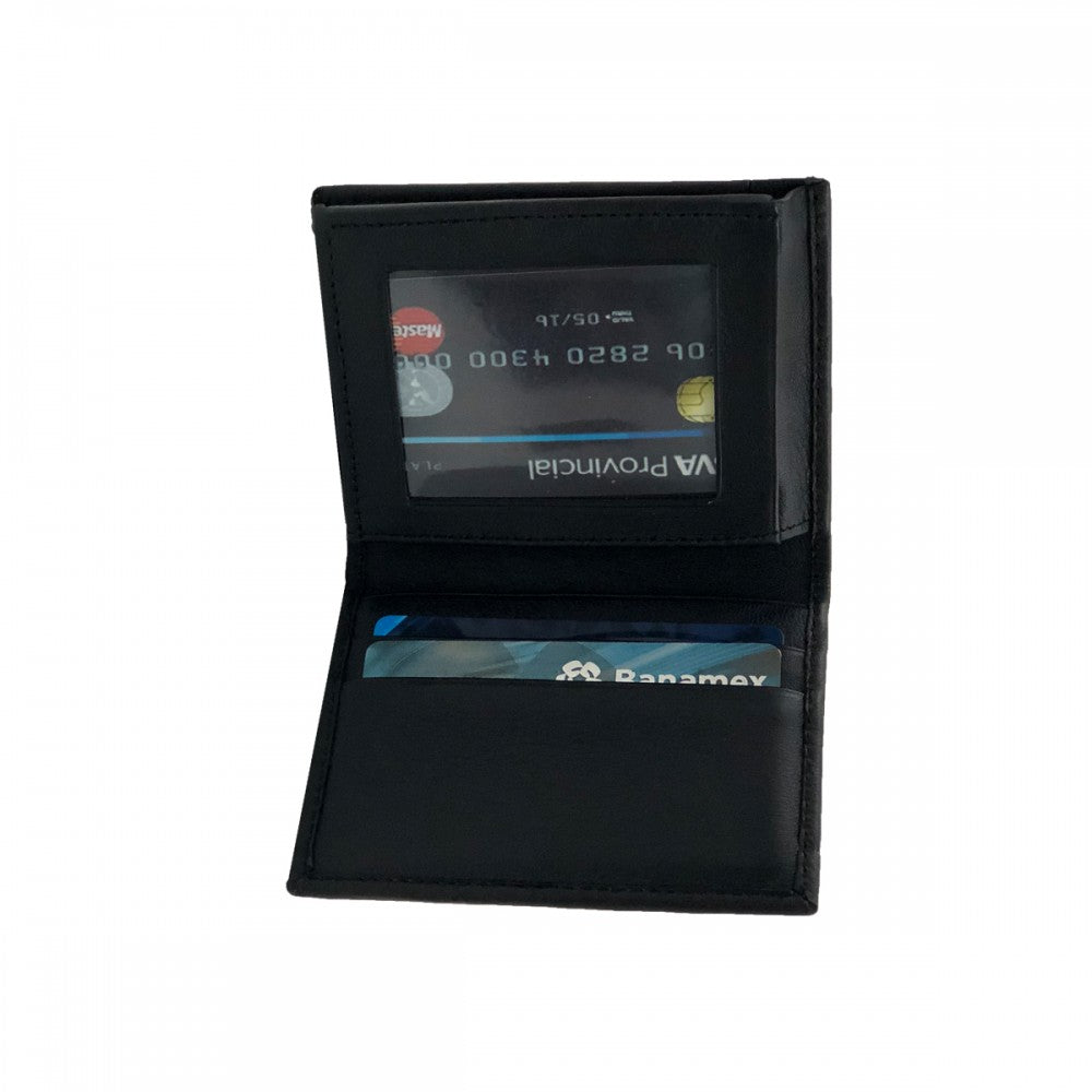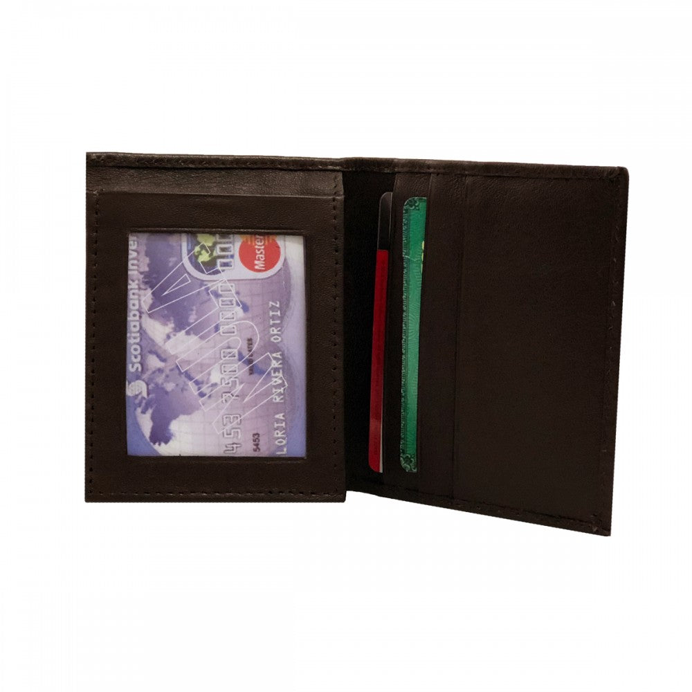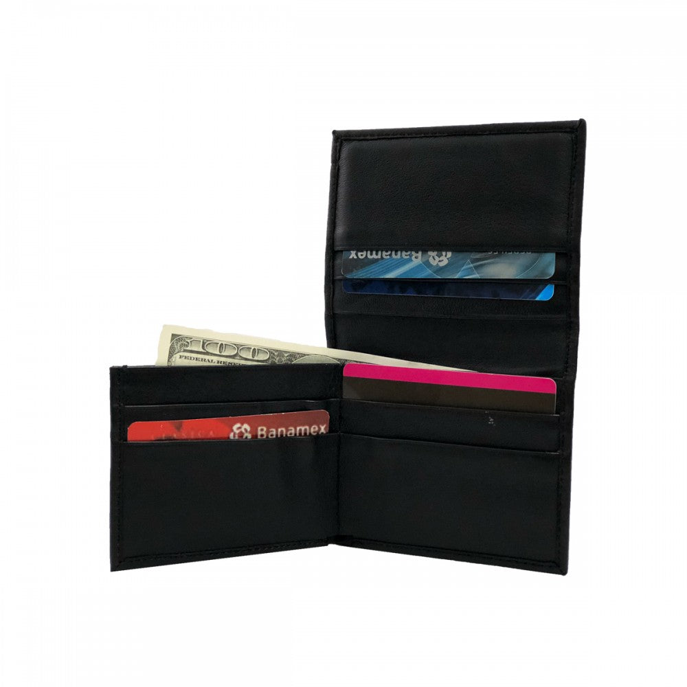 ¡Atrévete a lucir un accesorio diferente! Esta billetera esta fecha en México diseñado a un tamaño práctico para una coordinación moderna y en piel genuina de borrego. Disponible en café y negro.