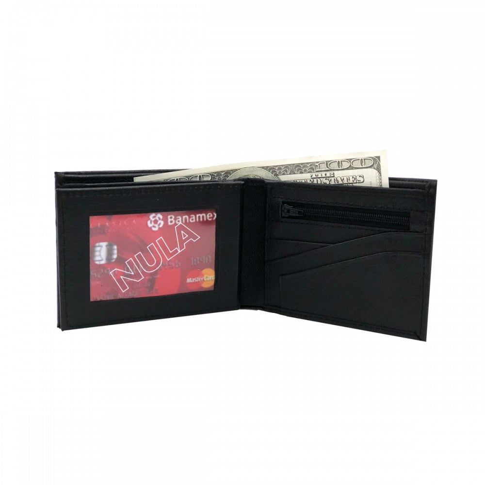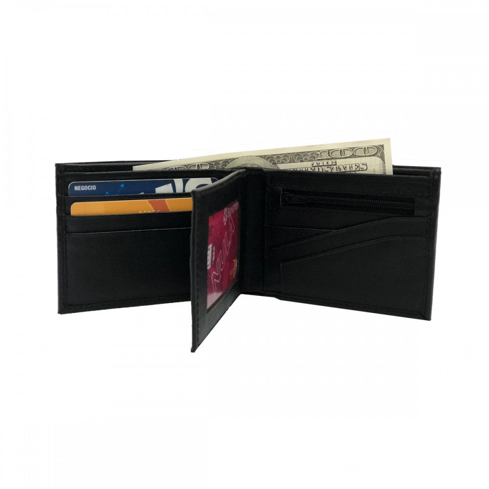 Billetera de cuero suave y liso, brinda soluciones inteligentes en cuanto a sus compartimentos además de una ranura con cierre ideal para monedas.
