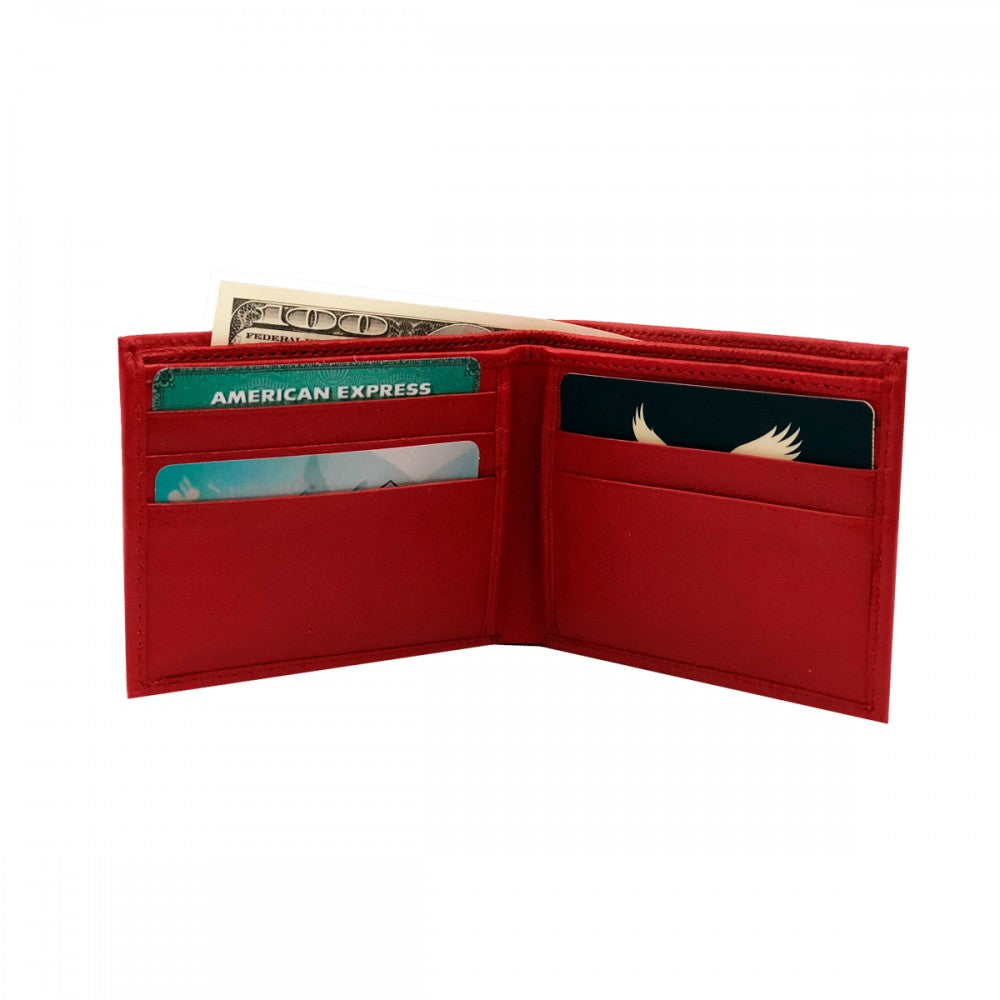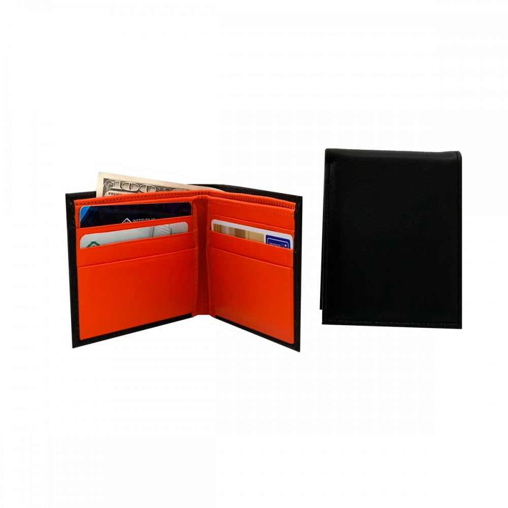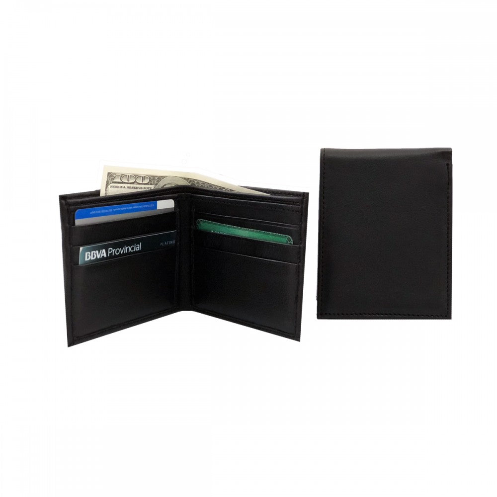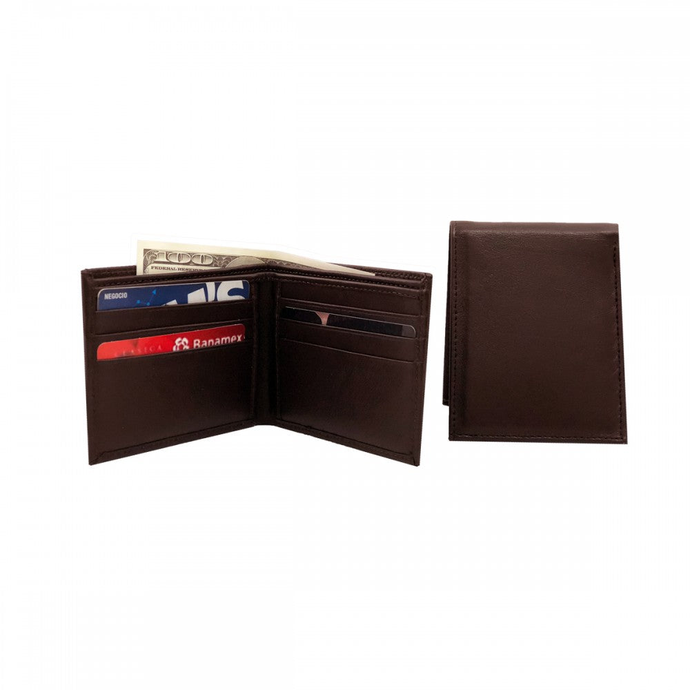 Billetera de cuero suave y liso plegable con compartimento para billetes y seis ranuras para tarjetas de crédito. Diseño clásico y sencillo ideal para el uso diario, cartera de caballero hecha en piel de la más alta calidad.