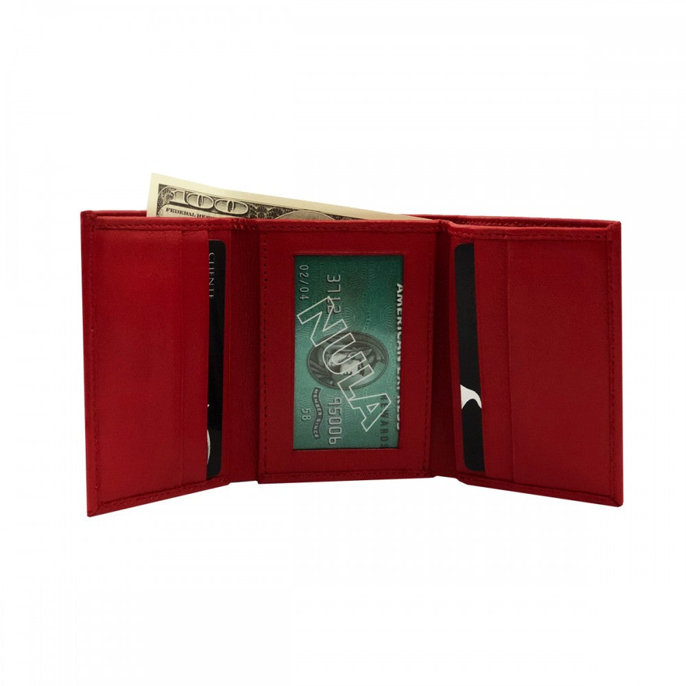 Billetera de triple pliegue delgada dotada de 6 compartimentos para tarjetas, una ventana central para identificación. Lleva lo necesario con practicidad y elegancia.