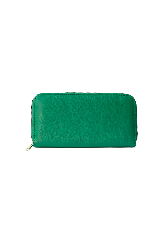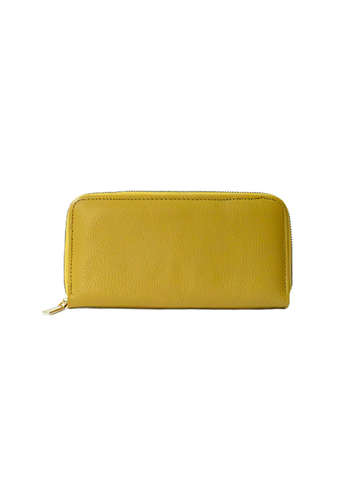 Complete wallet crafted from high-quality, soft leather. This women's leather wallet features a trifold design with eight card slots, cash, and coins. Ideal for everyday use, it has gold-tone metal clasps.