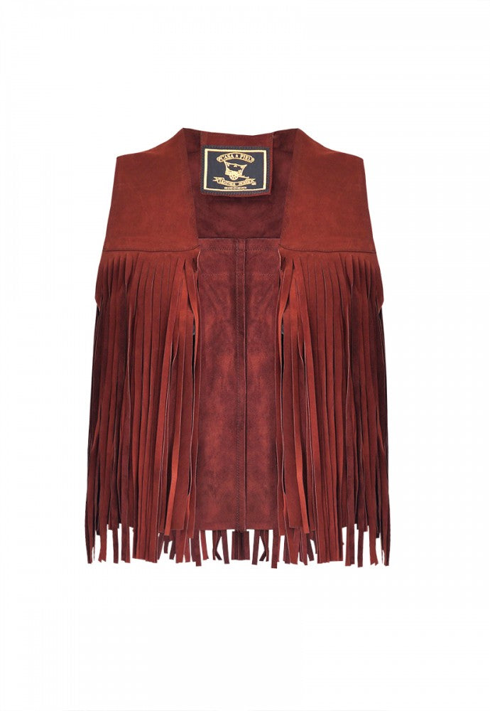 Beard vest made with genuine calfskin, unlined, available in brown, sizes from XS to L.