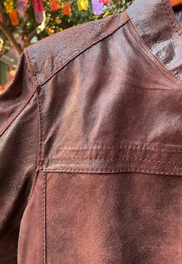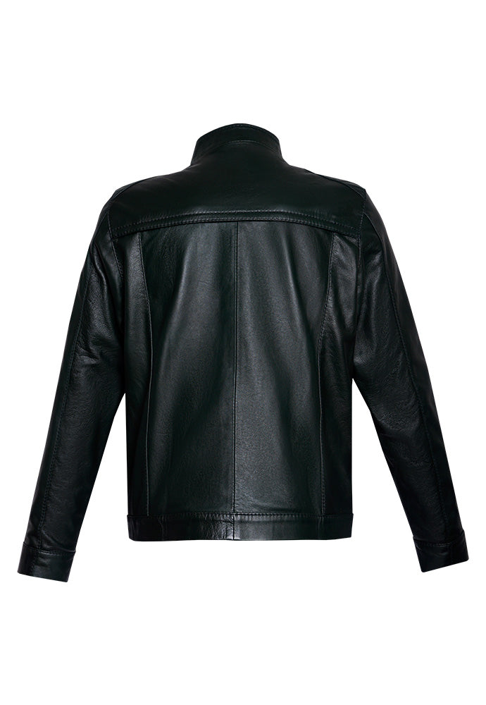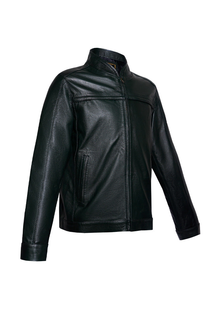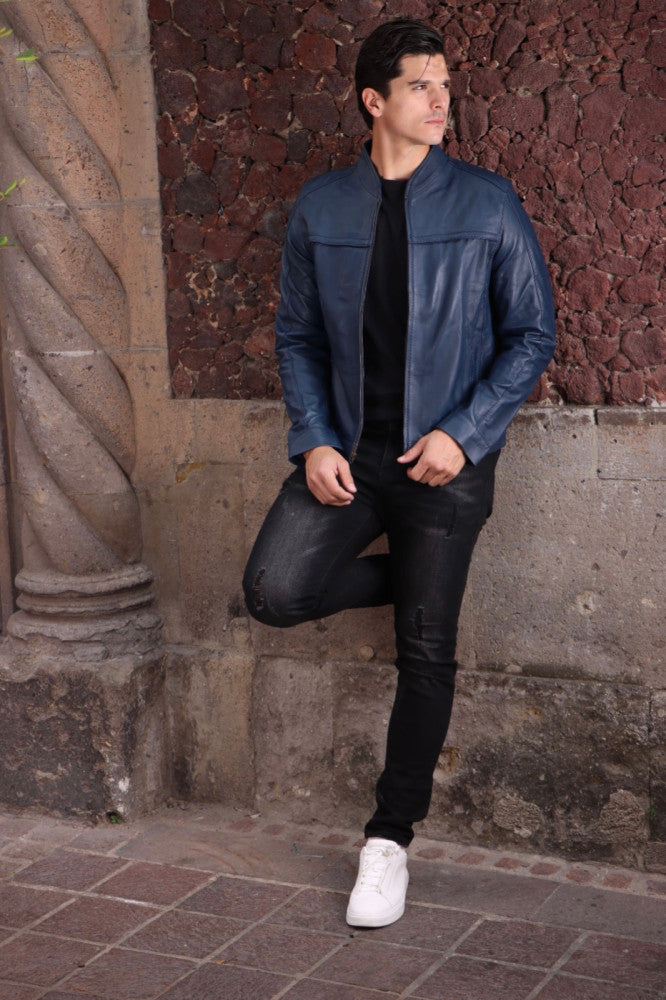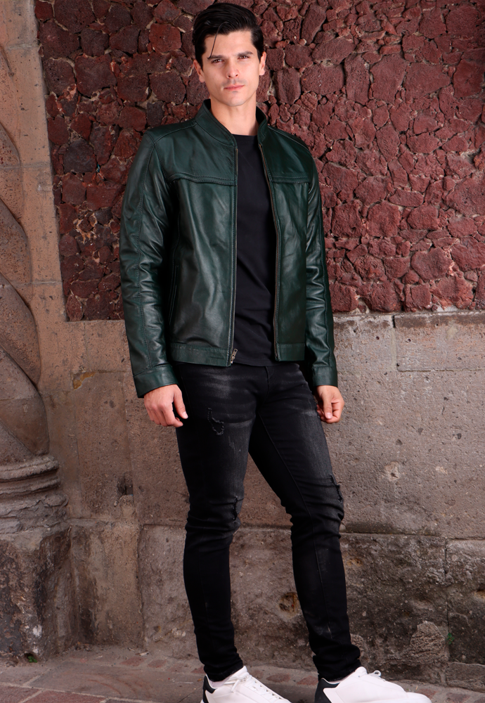 Chamarra de piel para caballero, modelo en cuero genuino de borrego, forro textil tipo satín, cierre metálico color latón, dos bolsas exteriores y una bolsa interior, disponible en color café y negro, tallas desde XS hasta XXL.