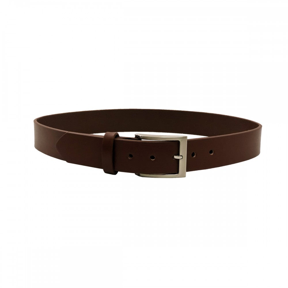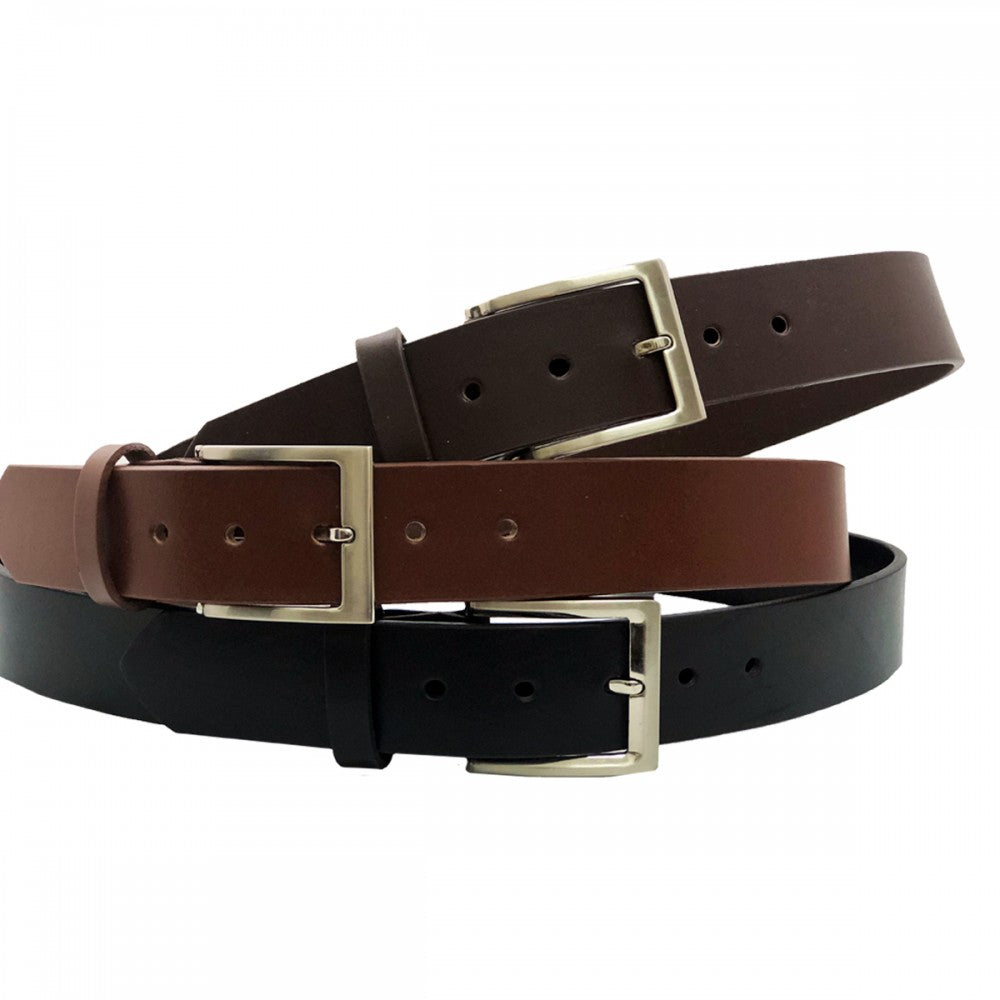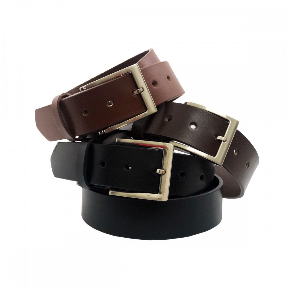 Cinturón de piel lisa, ancho tipo vaqueta con hebilla color níquel. Disponible en color negro, café y miel, tallas desde 30 a 50.