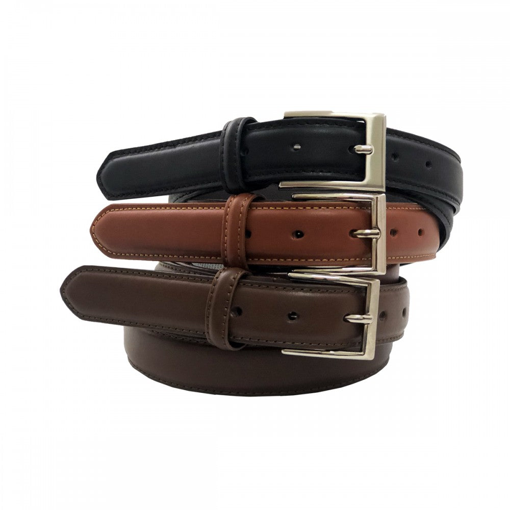 Leather belt, slim casual style made of smooth leather with nickel-color buckle. Available in black, brown and honey, sizes from 30 to 42.
