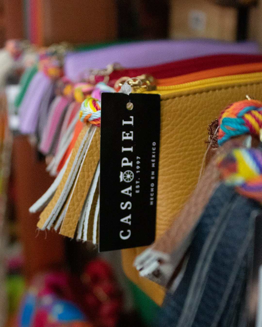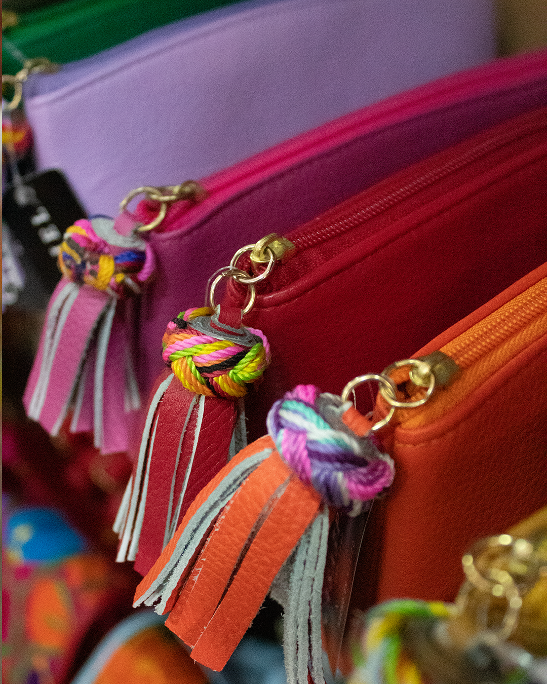 Modern and spacious cosmetic bag, ideal for carrying your daily makeup or can be used as a handbag, it has a leather pom pom, metal zipper and polyester fabric lining, available in various colors.