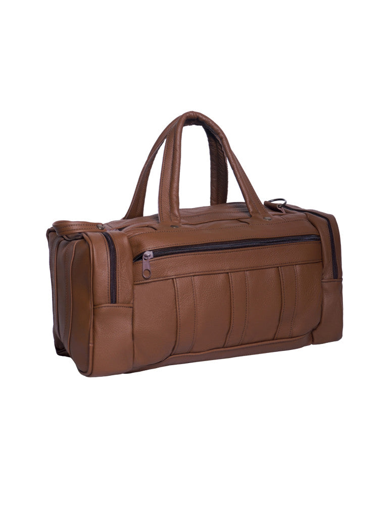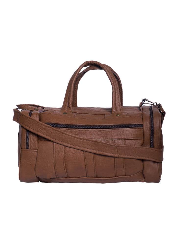 Suitcase made of genuine cowhide leather with two side bags and two zippered compartments, it has a hand strap and a long strap to be used as a bag, thanks to its size it is ideal as a handbag, lunch box or toiletry bag.