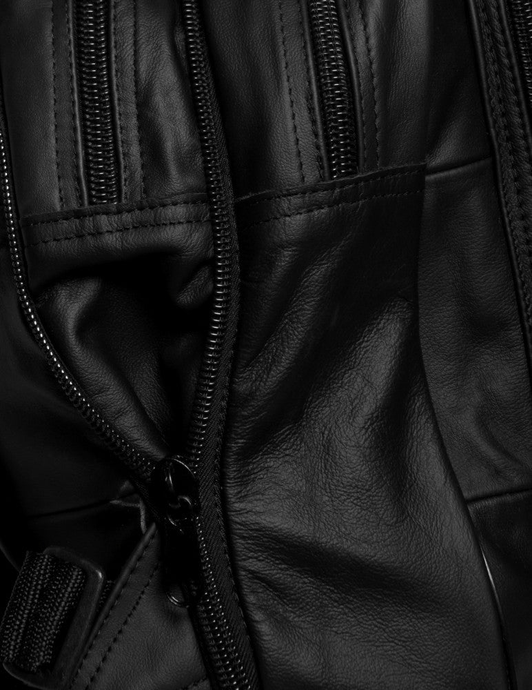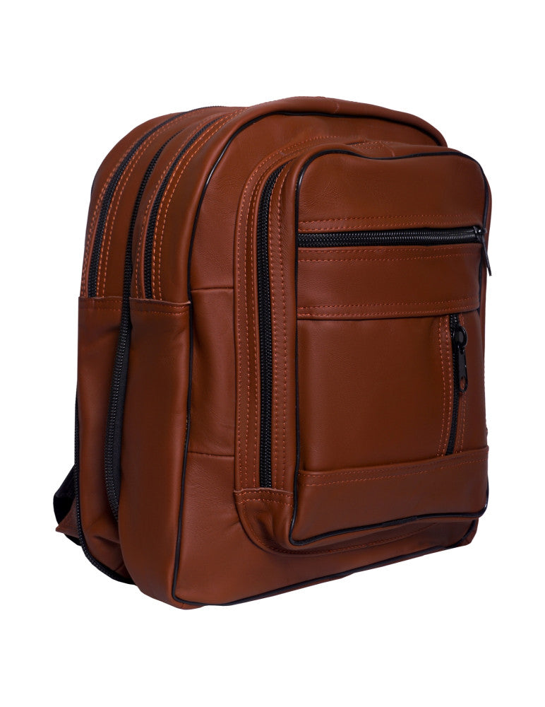 Mochila de piel vacuna con un estilo único, con amplio espacio ideal para diferentes actividades. Ofrece tres compartimientos frontales con cierre para mayor seguridad, doble cremallera para aumentar el ancho de la mochila, dos compartimientos con cierre y un espacio para laptop de 25 x 29 cm.