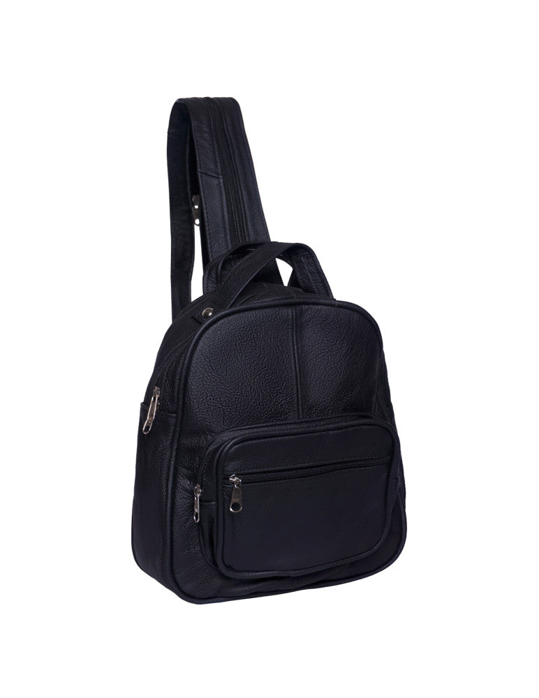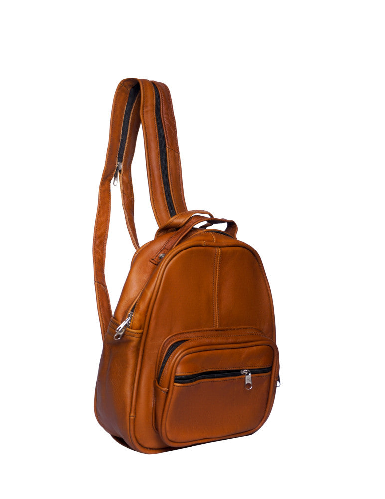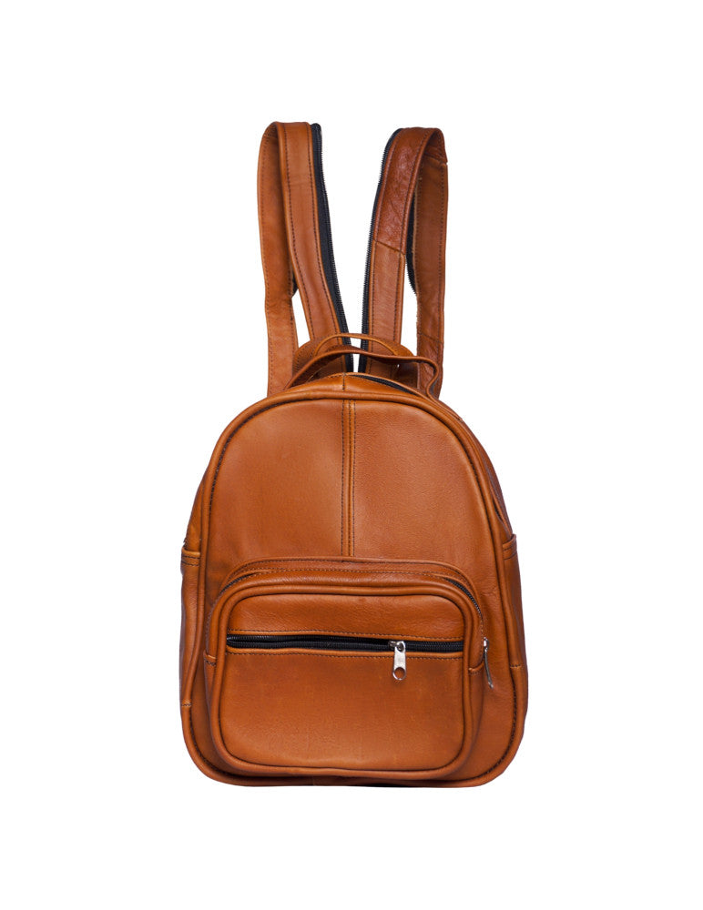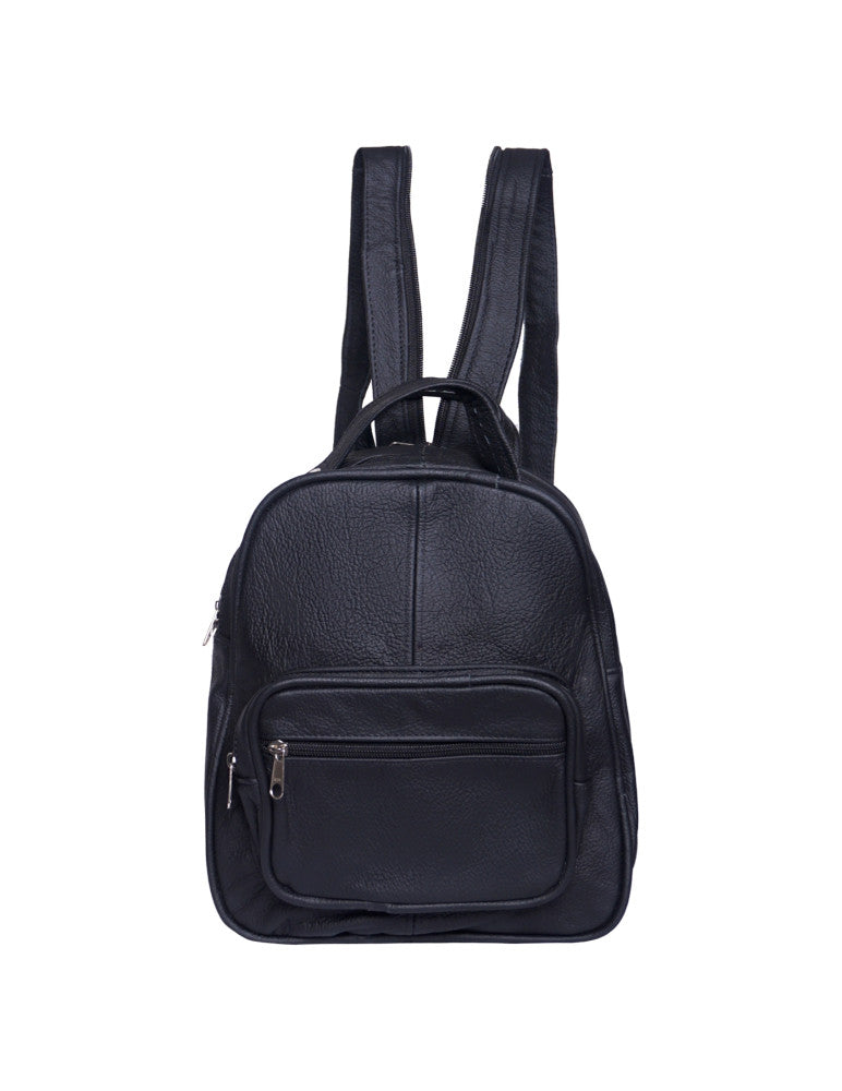 Leather backpack, has two front zippered compartments, a rear zippered compartment; Inside it has a zippered pocket and straps that are joined with a zipper to use it together or as a daily backpack.