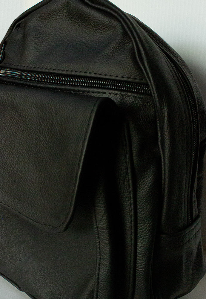 Mochila con un corte redondo, hecha en piel de vacuno con un diseño casual y sport, su cómodo tamaño la hace ideal para llevarla a cualquier lugar, ideal bolso de diario, tiene un strap ajustable, una bolsa principal con cierre, compartimento delantero que cierra con velcro, y otro espacio con cierre en la espalda para guardar objetos de forma mas segura.
