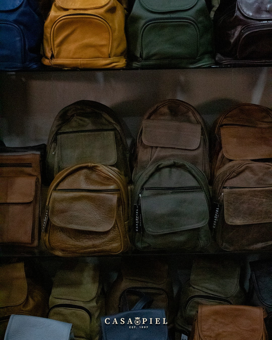 Round cut backpack, made of cowhide leather with a casual and sporty design, its comfortable size makes it ideal to take anywhere, ideal bag for everyday use, it has an adjustable strap, main bag with closure, front compartment that closes with velcro, and another zippered space on the back to store items more securely.