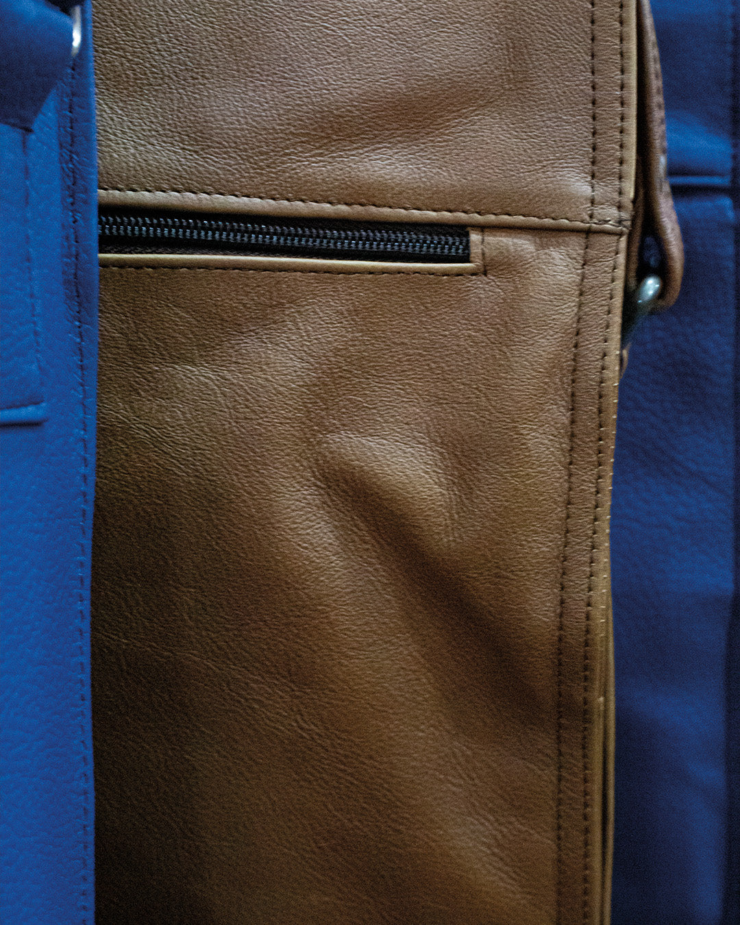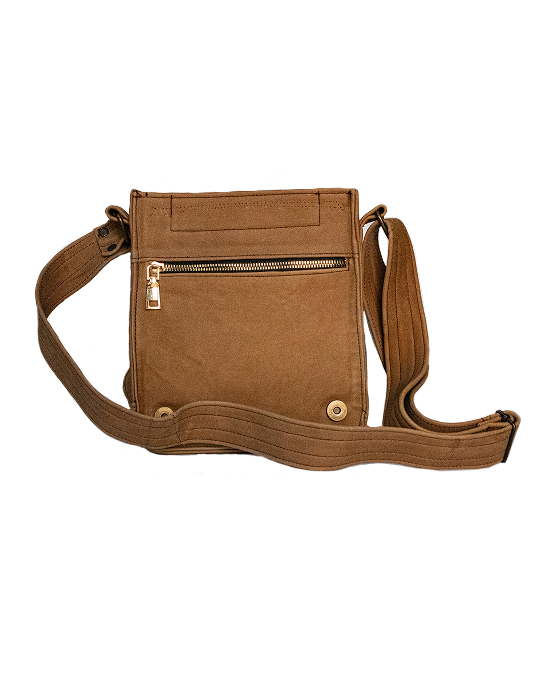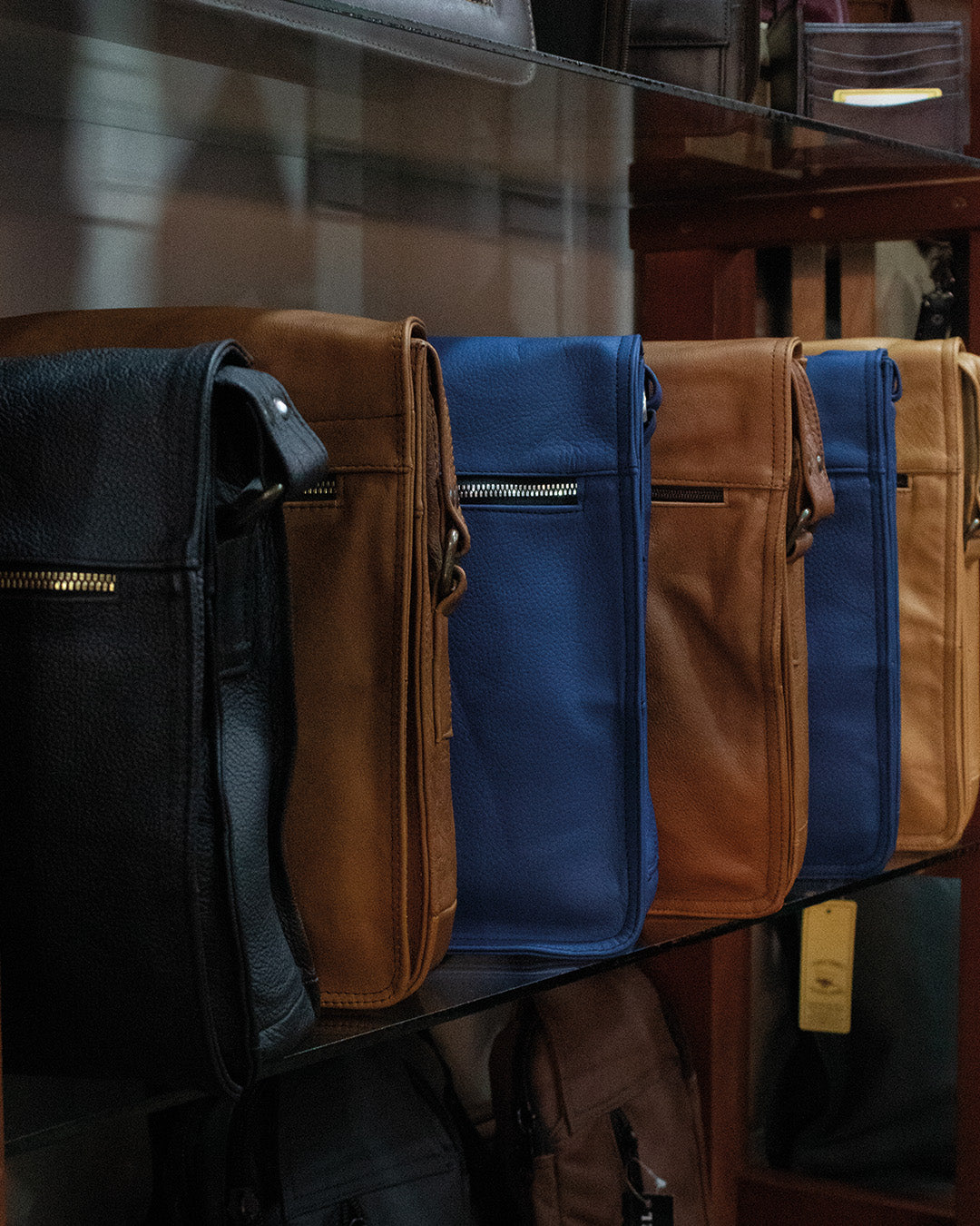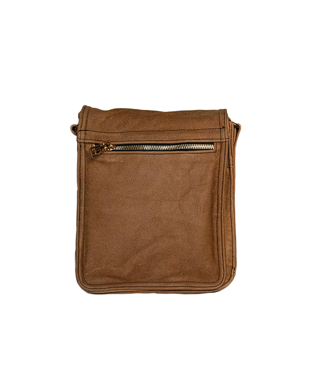 Small leather briefcase, made of genuine leather with a main flap and button closure. Its multiple compartments make it ideal for carrying all your daily essentials and small items. It also has an adjustable strap and a wristlet.