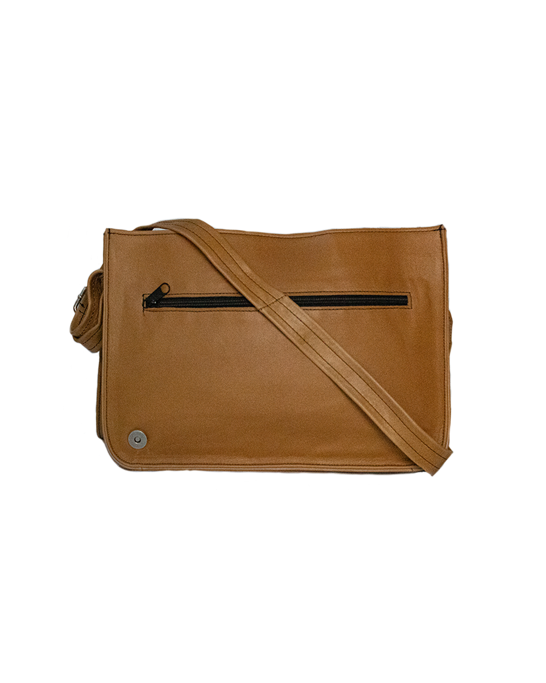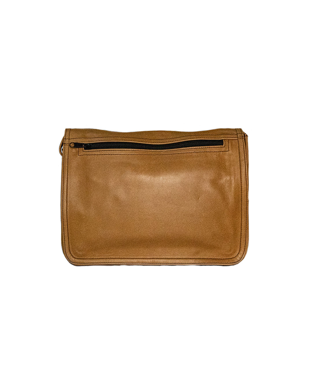 Portafolio de tapa en formato horizontal, fabricado en piel genuina con una principal con tapa y cierre en botones, sus múltiples compartimentos lo hacen ideal para llevar todos los esenciales del día a día y artículos pequeños, correa ajustable y correa de mano.